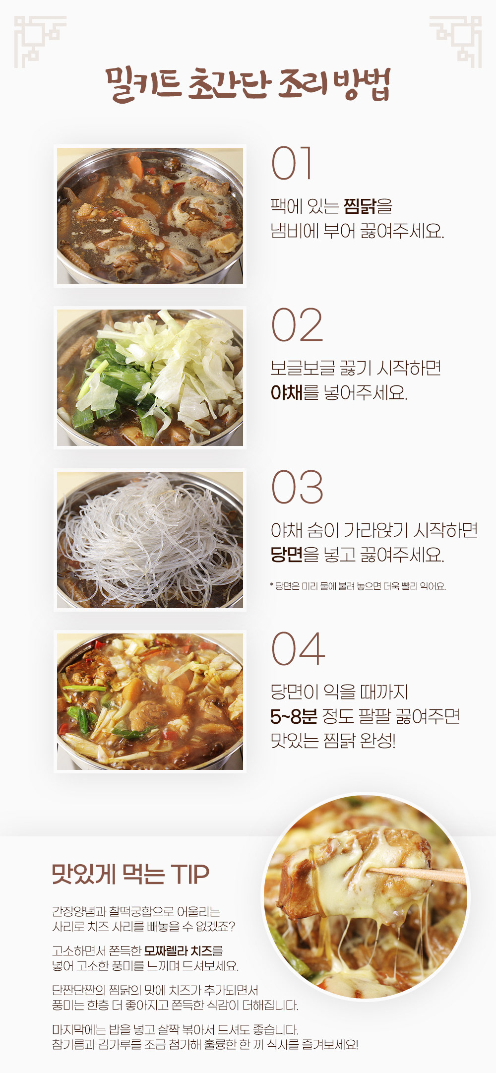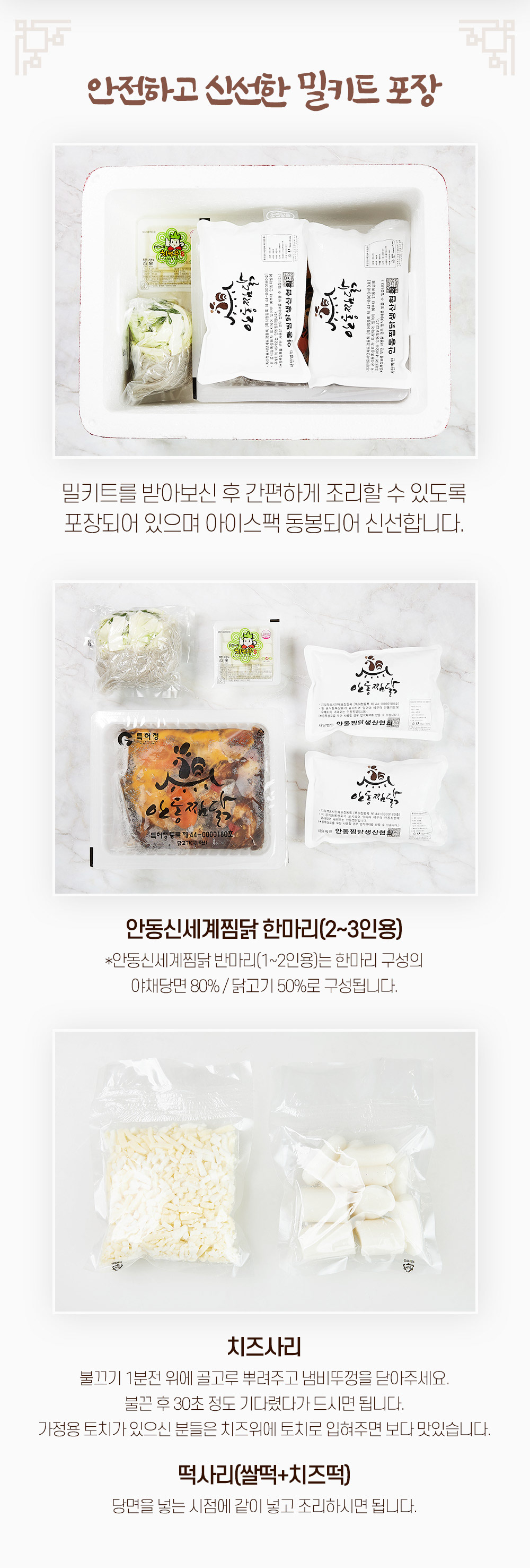 음식 메뉴사진 촬영 / 상세페이지 제작 / 밀키트 패키지(띠지) 디자인 / 실내 대형 실사 디자인